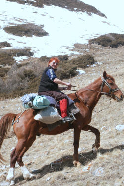 Hestene, de bruger i Himalayabjergene, er små og seje. En af jægerne havde mobiltelefon med.